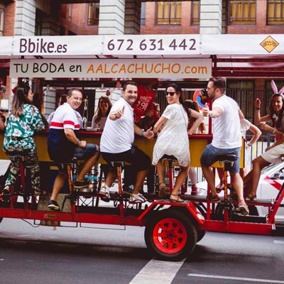 Bbike is a “beer bike“, a multi-tandem bike for up to 18 people with a built-in beer tap in which you’ll be able to enjoy Madrid in an orginal, different and fun way.